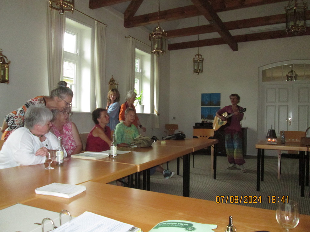 Ute hatte den Weg von zuhause mit Gitarre auf dem Fahrrad gemeistert - dafür unseren besonderen Dank! Im weiteren Verlauf wurde das liebevoll präsentierte Fingerfood gemeinsam genossen und die Stimmung war einfach gut.