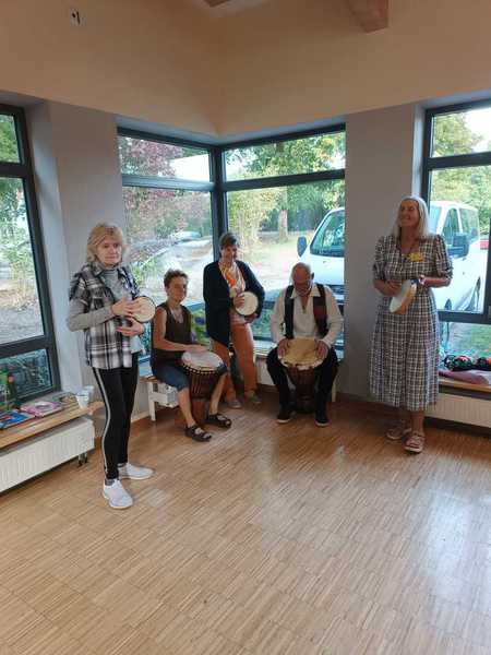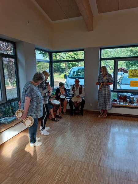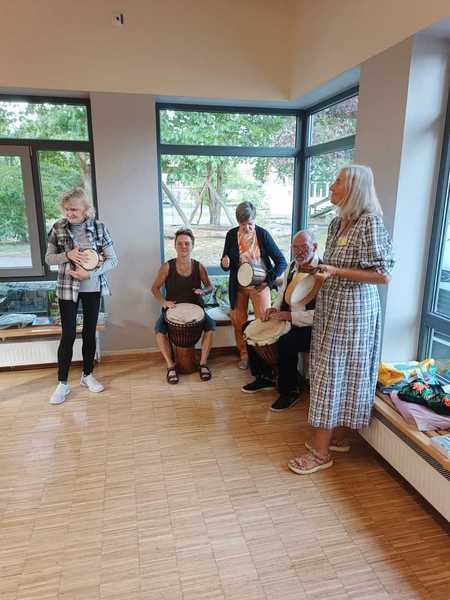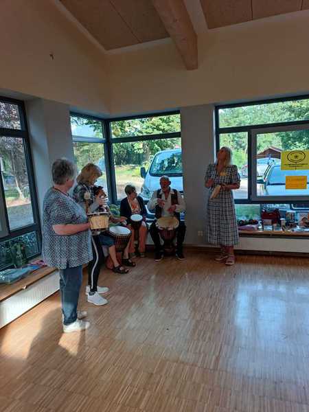 Gemeinsames Trommeln mit Familie Kupfer aus Borg brachte Energie und Stimmung in das Fest. "Wir freuen uns immer, mit unseren Wissen und den handgemachten Kleinigkeiten bei der Nachbarschaftshilfe zu sein", so Frank Kupfer berührt von der guten Stimmung.