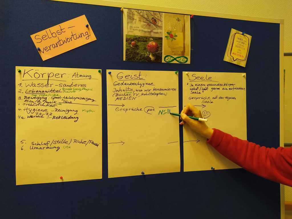 Es wurde die alte Struktur von Körper/Seele/Geist genutzt, um Inhalte und Ideen zu ordnen und die nächsten Aktiventreffen zu planen. "Ich habe mich sehr gefreut, nach längerer Pause mal wieder bei der Nachbarschaftshilfe sein zu können, so Monika Jost erfreut von dem Abend. Sie steuerte auch gleich ein paar Fotos bei.